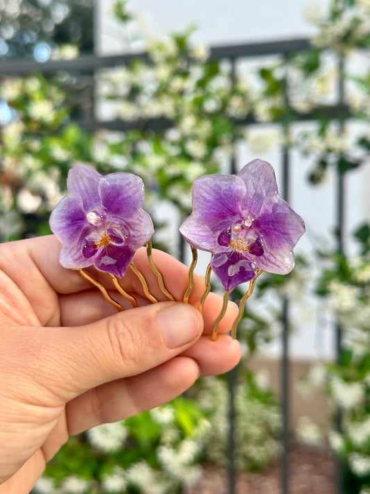 Mini Purple Orchid Hair Forks